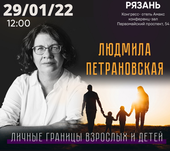 29 января 2022 года в конгресс-отеле АМАКС города Рязани состоится семинар Людмилы Петрановской "Личные границы взрослых и детей". Не пропустите!